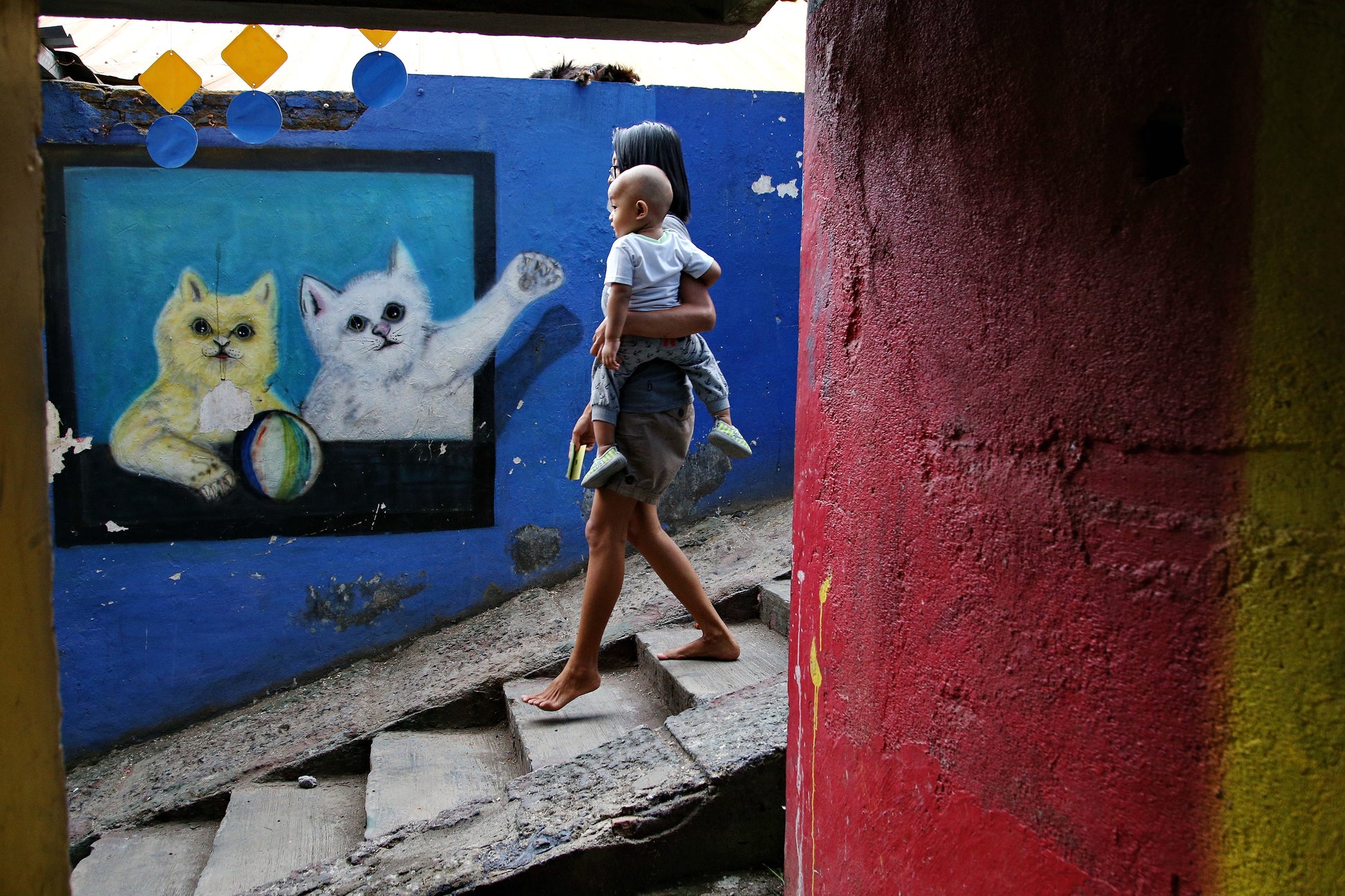 Kampung Pelangi Malang: Street scene from Kampung Pelangi in Malang, East Java, Indonesia. Istead of rebuilding the old part of the city, the authorities had it painted in every color of the spectrum, and adorned with street art. The name for such re-painted old quarters, a common solution for urban planners in Java, is Kampung Pelangi - "Rainbow Village".