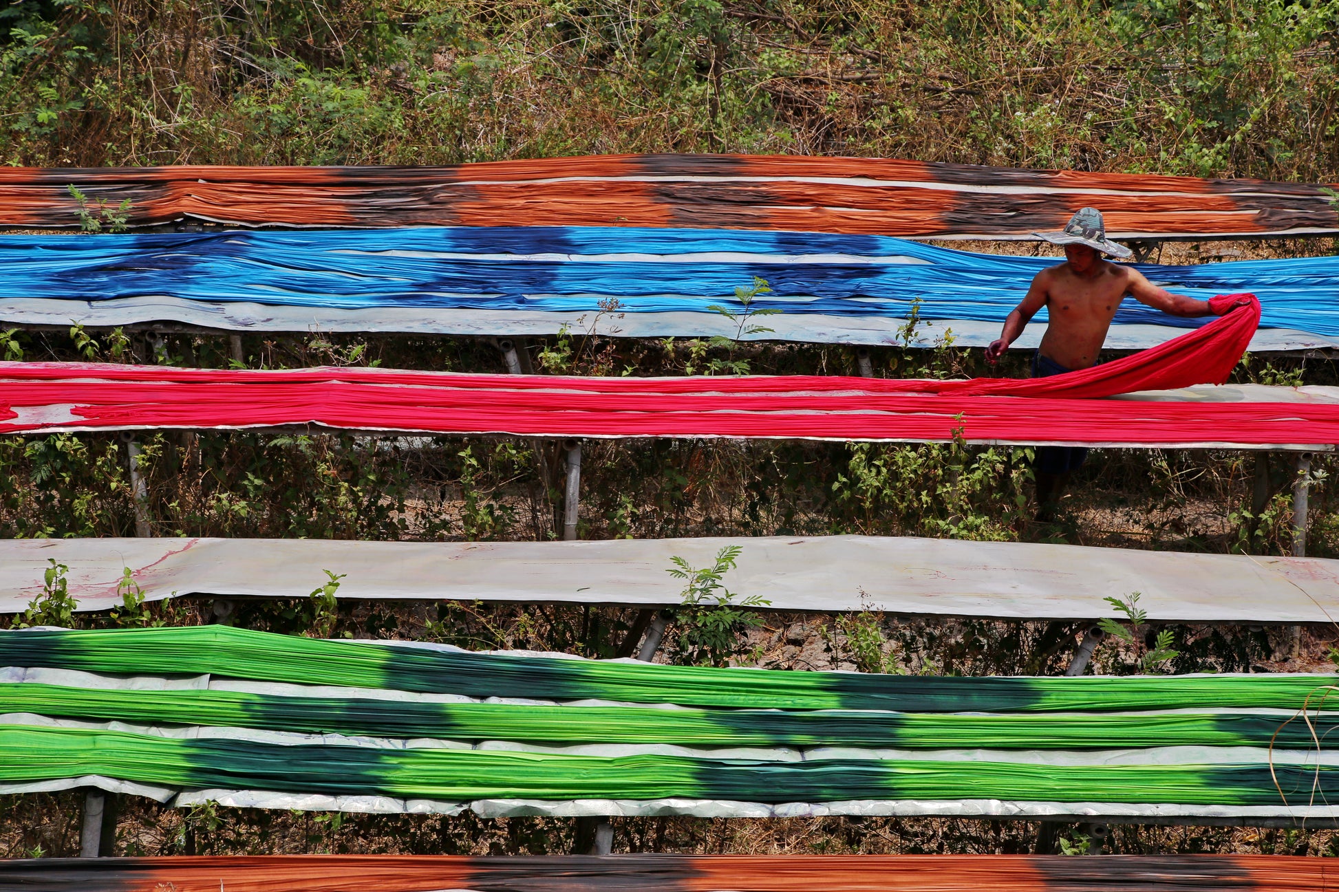 Jemur kain Solo: Textile dyeing factory in Surakarta, Indonesia.