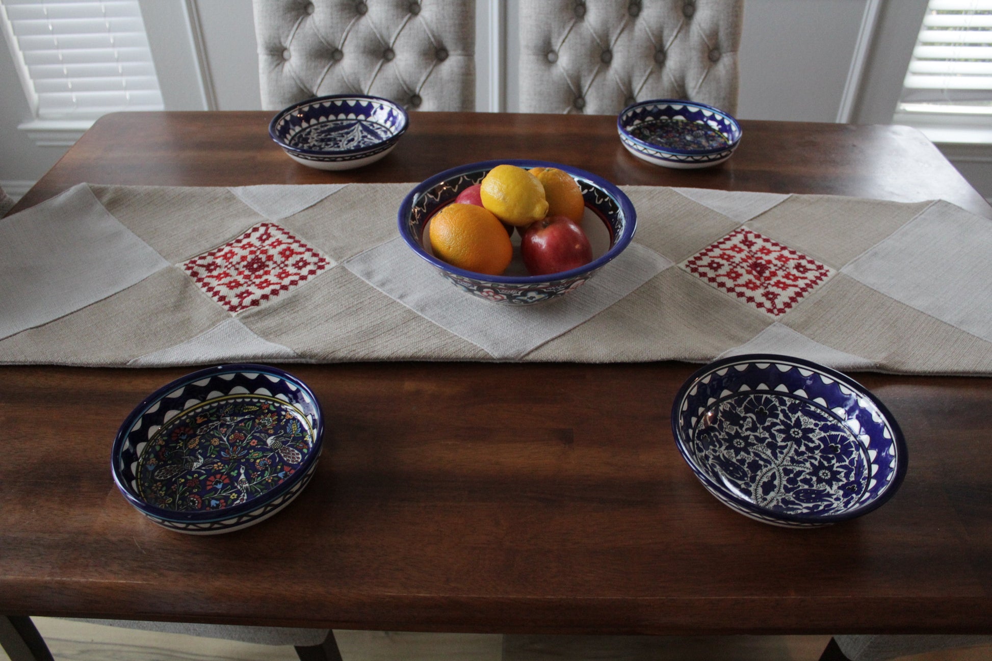 Introducing our largest piece of tatreez art to date, taking over 1.5 days to craft! The Tatreez Table Runner is the perfect accent for your home, especially for celebrations and holidays.