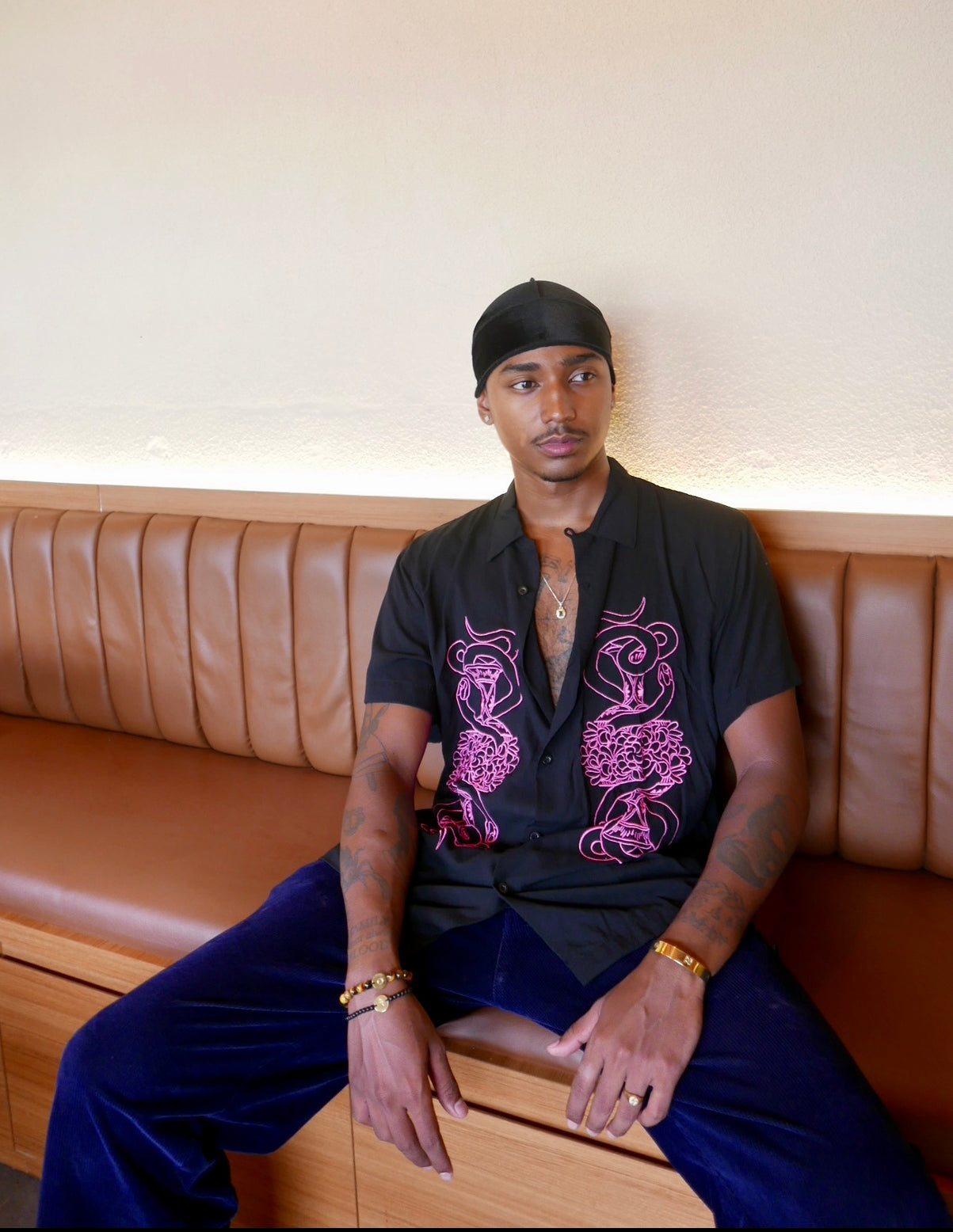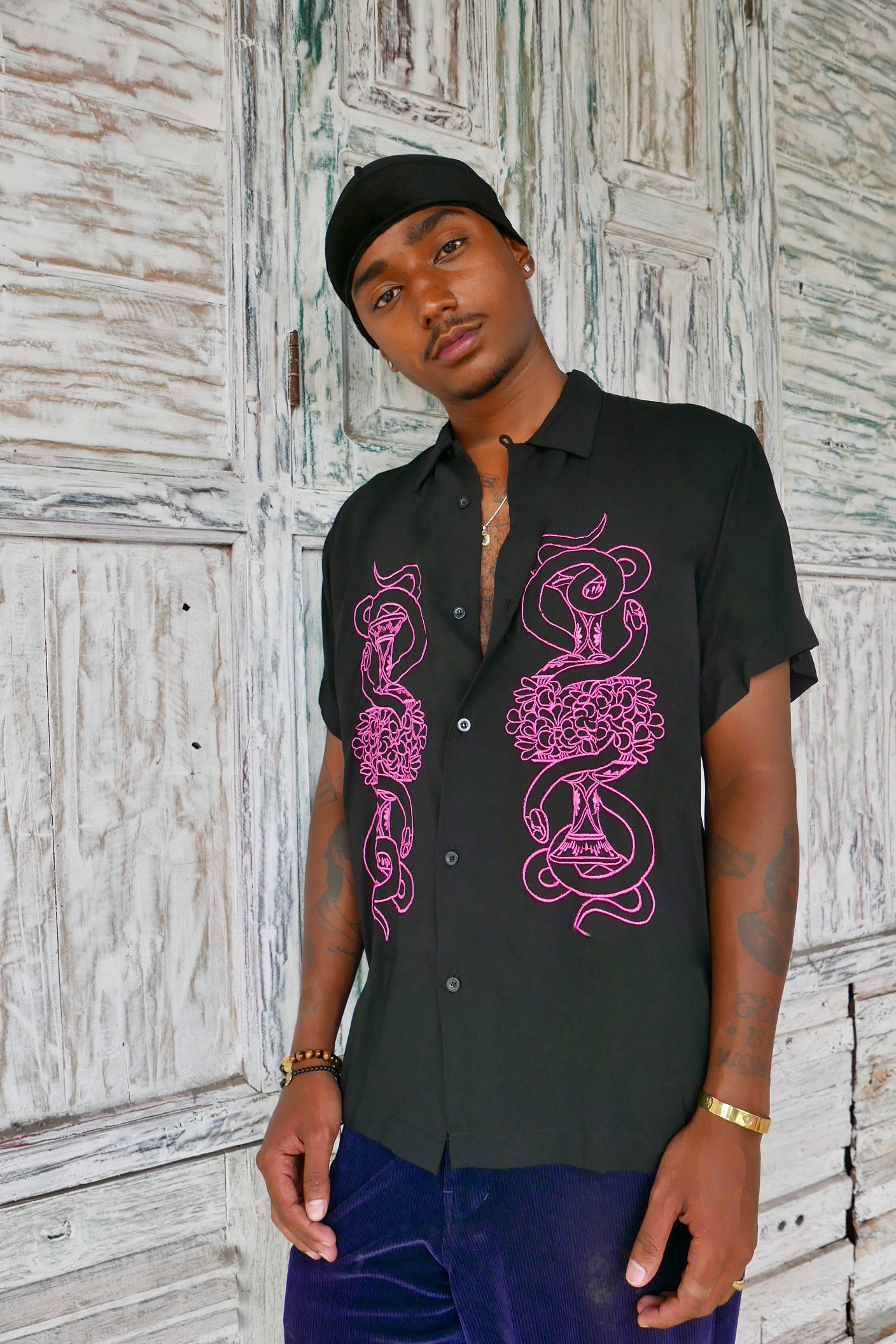 The men's serpent shirt made of rayon is a stylish and comfortable piece of clothing that can make a bold fashion statement. Rayon is a semi-synthetic fabric that is made from natural materials such as wood pulp and cotton waste. It is known for its soft, silky feel and its ability to drape well, making it a popular fabric for clothing.